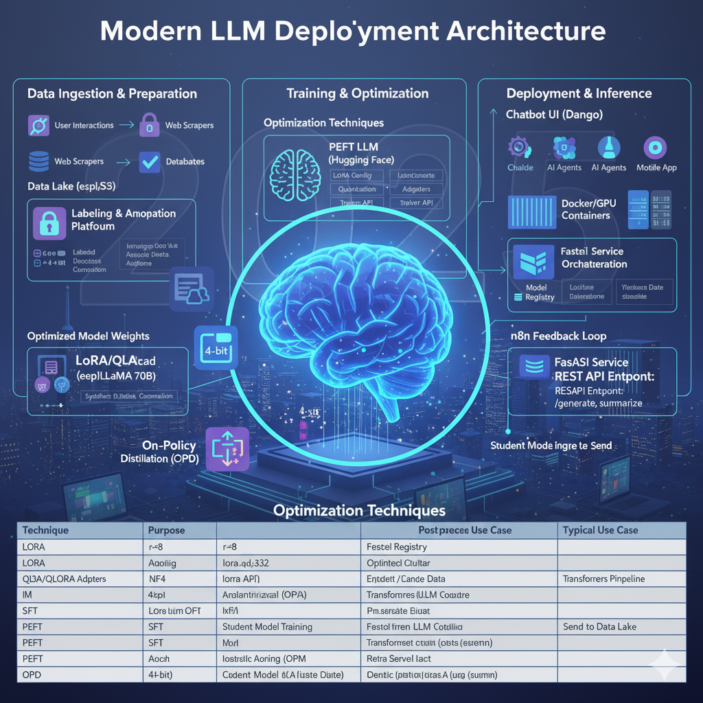Optimizing Large Language Models (LLMs) with LoRA, QLoRA, SFT, PEFT, and OPD allows European developers and organizations to build efficient, secure, and sustainable AI systems that comply with EU AI Act and GDPR requirements.